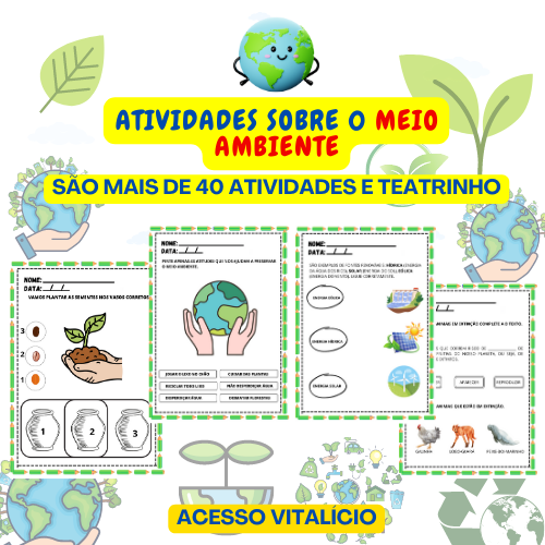 Prepare-se para embarcar em uma jornada educativa e divertida, repleta de conhecimento sobre o meio ambiente. Com mais de 40 páginas de atividades cativantes, histórias emocionantes e um teatrinho completo com fantoches, + super bônus + de 200 atividades e 50 jogos pedagógicos, este kit é perfeito para estimular o amor e a consciência ambiental nas crianças desde cedo.